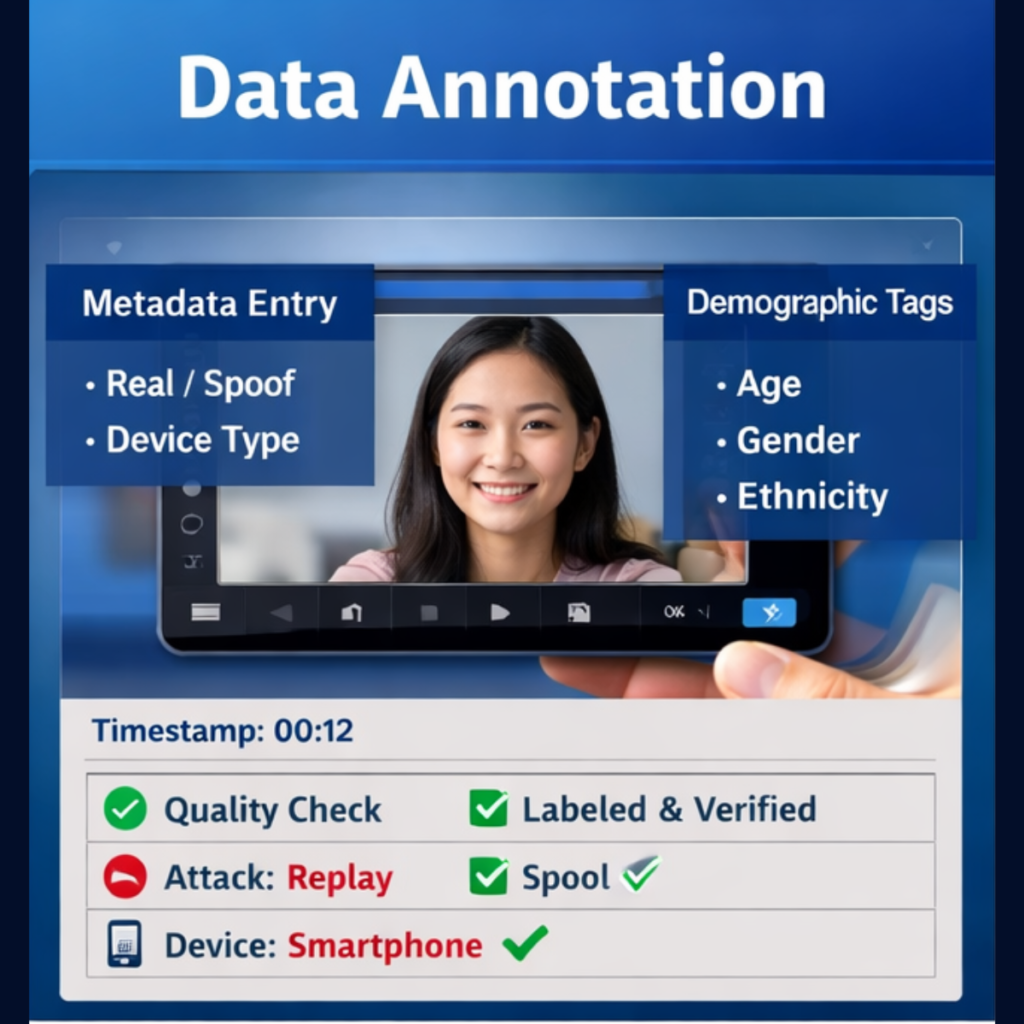 To achieve production-grade accuracy, the client required a large-scale, diverse, and metadata-rich video dataset that could effectively train AI models to distinguish between genuine live users and fraudulent attempts across real-world conditions.